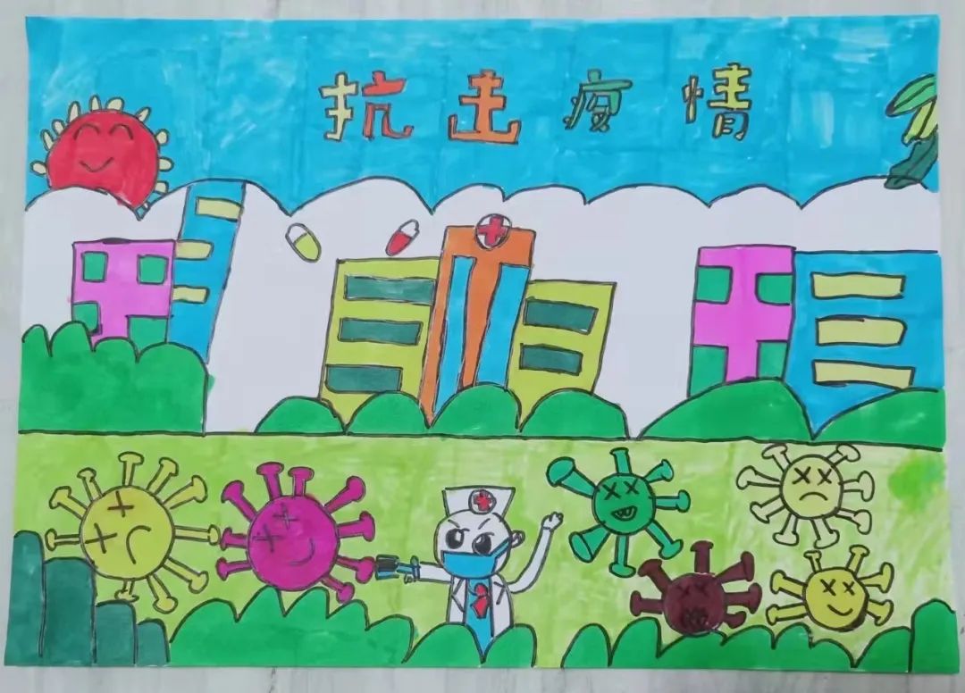疫情牵动人心,艺术传递温暖。卷土重来的新冠疫情,打乱了我们原本的生活节奏,为让孩子们参与到疫情防控的行动中来,同学们纷纷以画笔为矛,以创意为盾,描绘所见,倾诉所想,创作了一幅幅主题鲜明、内容丰富、饱含情感的抗疫主题画作。